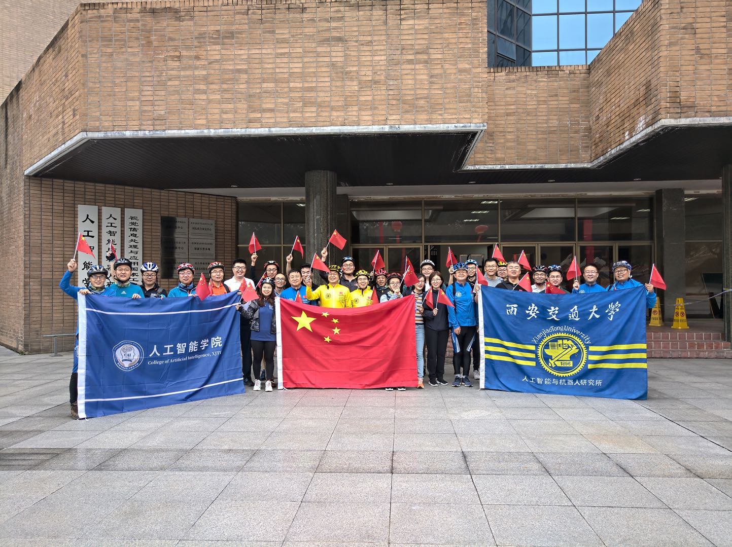 举办了以“不忘初心,砥砺前行--70公里贺伟大祖国70周年华诞”为主题的骑行体育活动。上午八时,三十余名师生从兴庆校区四大发明广场集合出发,沿渭河河堤路一路向西骑行到创新港,下午三点从创新港四号楼泓理楼出发返回兴庆校区,往返骑行距离约70公里,共同庆祝伟大祖国建国70周年。