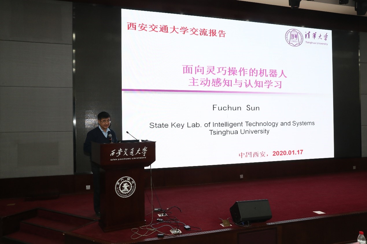 成立一周年以来取得的突破和成果。刘跃虎教授主持了特邀报告环节。清华大学孙富春教授、中科院自动化研究所胡占义研究院和浙江大学刘妹琴教授分别做了《面向灵巧操作的机器人主动感知与认知学习》、《对视觉感知的一些思考》、《基于水下传感器网络的目标跟踪技术》等精彩的学术报告,并与师生进行了交流。