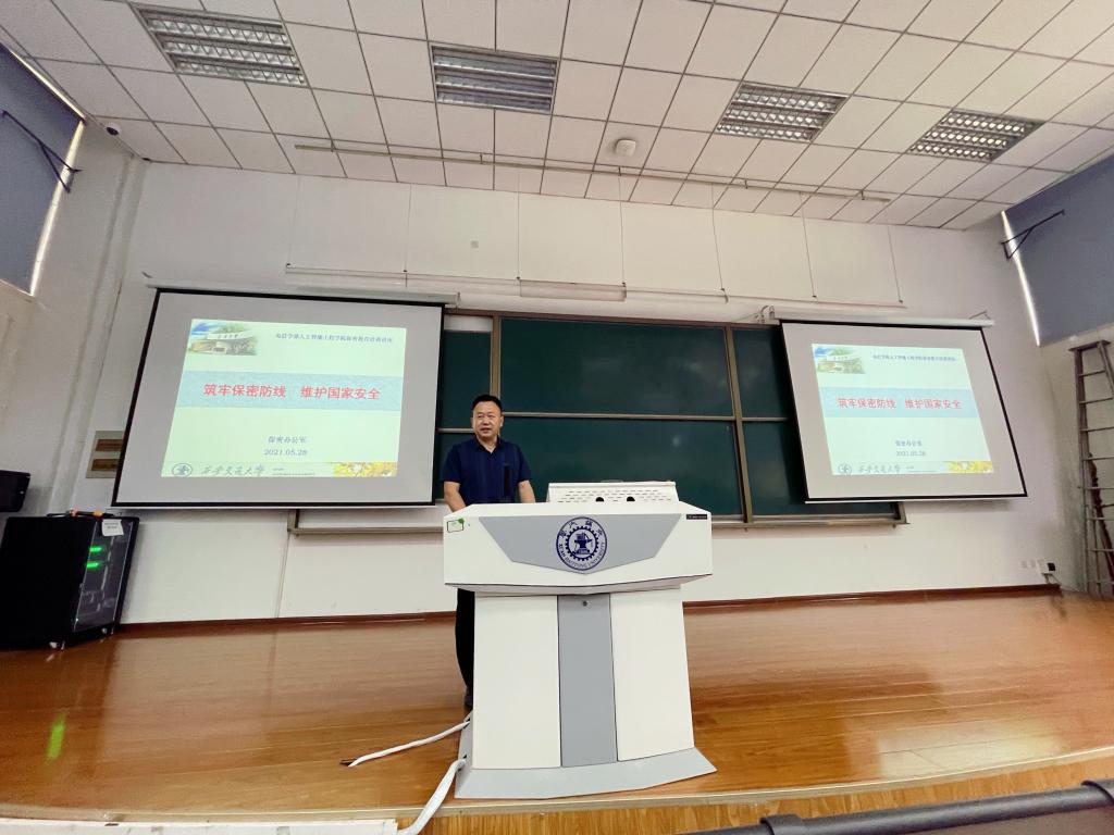 任明强以“筑牢保密防线 维护国家安全”为主题,介绍了当前复杂严峻的保密工作形势,从保密工作基本知识、信息化条件下保密工作重点防范领域、军工科研的基本保密要求等方面,强调了思想、管理、技术三大保密防线,并通过典型案例系统深入的为全院师生进行深刻的保密工作培训。
