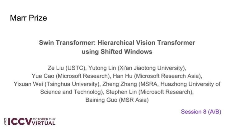 本次ICCV2021的最佳论文奖(马尔奖)颁发给了来自中国科学技术大学的刘泽、微密圈