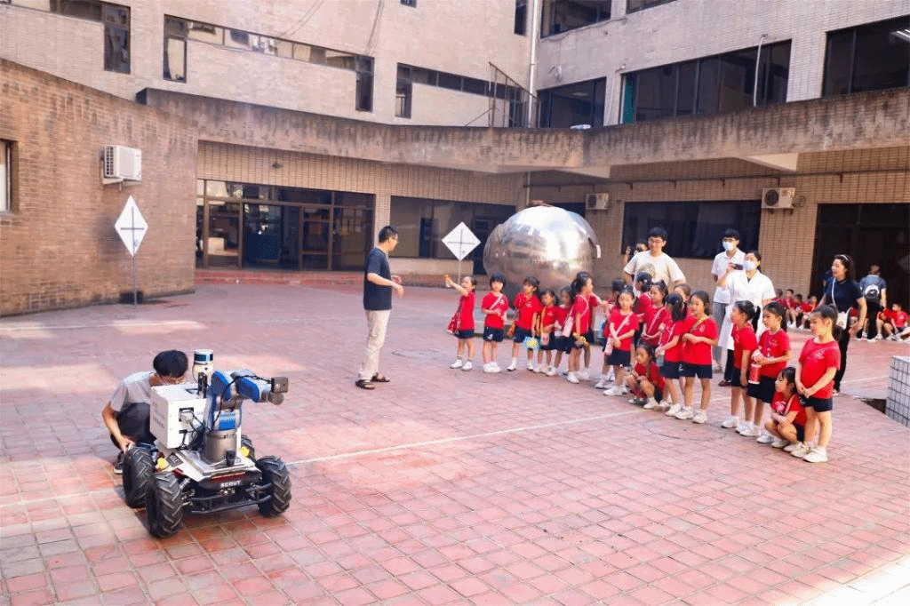 此次活动学院共有十个项目参与展示,“人脸年龄性别识别”和“人脸卡通画定制”是每年的必备项目,小朋友们看到自己出现在电视里十分激动;“播放立体视频的电视”画面逼真,小朋友们不禁纷纷伸出双手去触摸跃出屏幕的“地球”,特殊的视频处理技术让小观众们身临其境,看得十分入神;“机器人视频演示”、“机器人现场演示”、“5G智能巡检机器人演示”是今年的新增项目,向小朋友们展示了机器人是如何工作的,充满科技的表演引来小朋友们的欢呼与喝彩,现场掌声连连;四大发明广场上的“无人机编队飞行表演”、“水陆车表演”、“遥控小汽车大赛”、“自主导航智能小车行驶表演”也是今年的几个重头戏,小朋友们兴趣浓厚,跃跃欲试,争先恐后的加入到与“小车们”的互动中,充满趣味的互动让小朋友们赞叹不已!