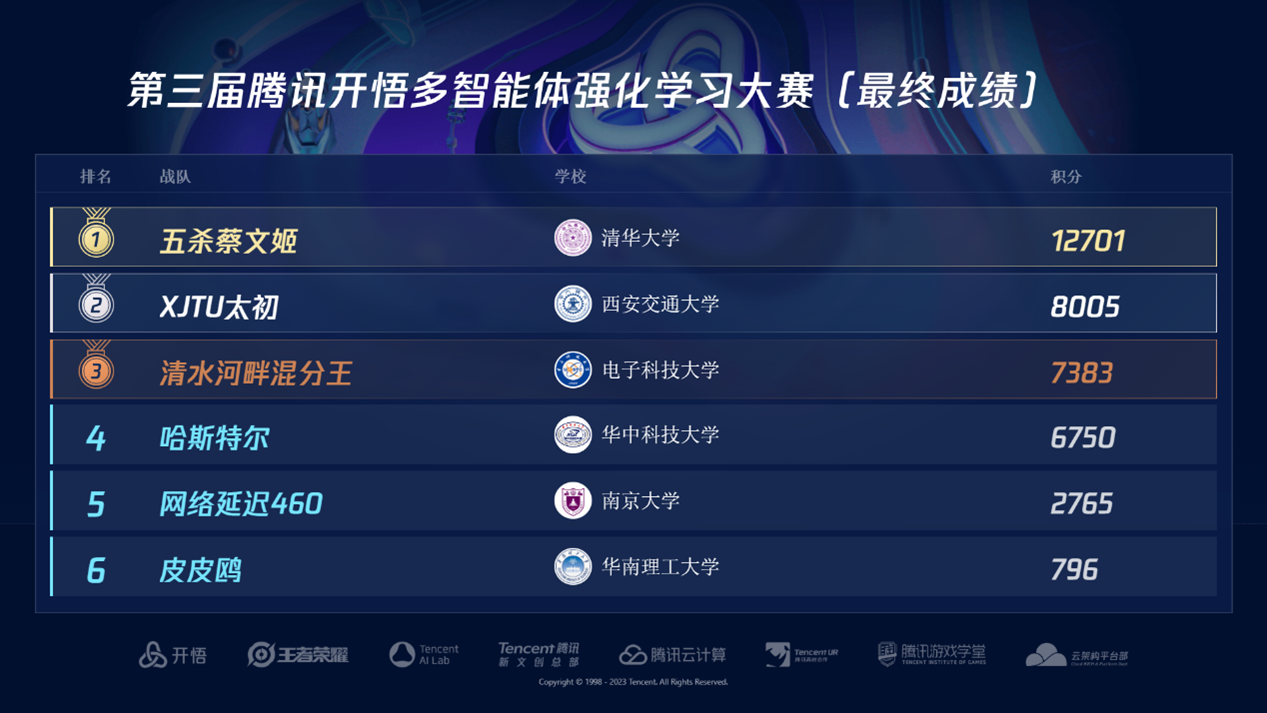 为了推动AI+游戏产业升级及人工智能研究的发展,腾讯AI Lab与王者荣耀团队联合举办的第三届腾讯开悟多智能体强化学习大赛(简称开悟大赛)决赛于近日圆满落幕。本届大赛于2022年9月1日正式启动,来自全国顶尖高校的30多支团队参赛,经过半年多的比拼,共有六支队伍进入决赛。经过激烈角逐,由 微密圈