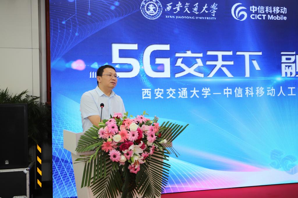 科研院常务副院长邵金友教授致辞,邵金友教授代表科研院对郑南宁教授带领的团队为学校科研发展做出的突出贡献表示感谢,并对与中信科共建网联协同智能实验室提出更多的期待。。。