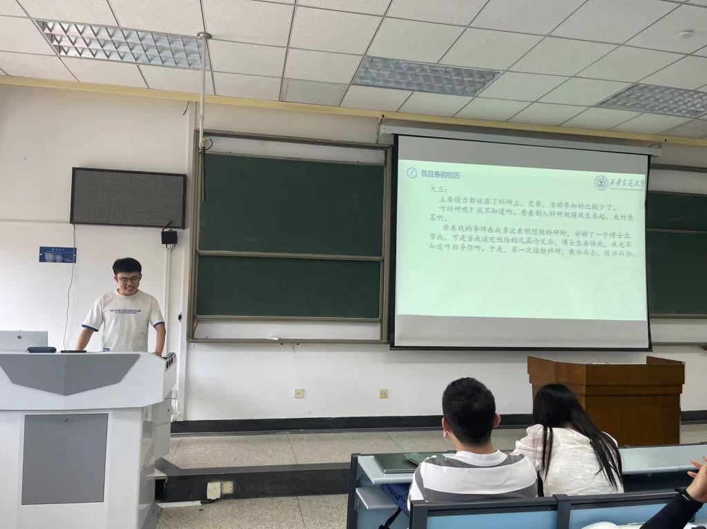 辅导员洪苏涵老师从钱学森学院概况、案例分析、专业交流三个方面向同学们介绍大学生活,鼓励同学们注重学科交叉,提升科研创新能力,脚踏实地,逐步实现目标。