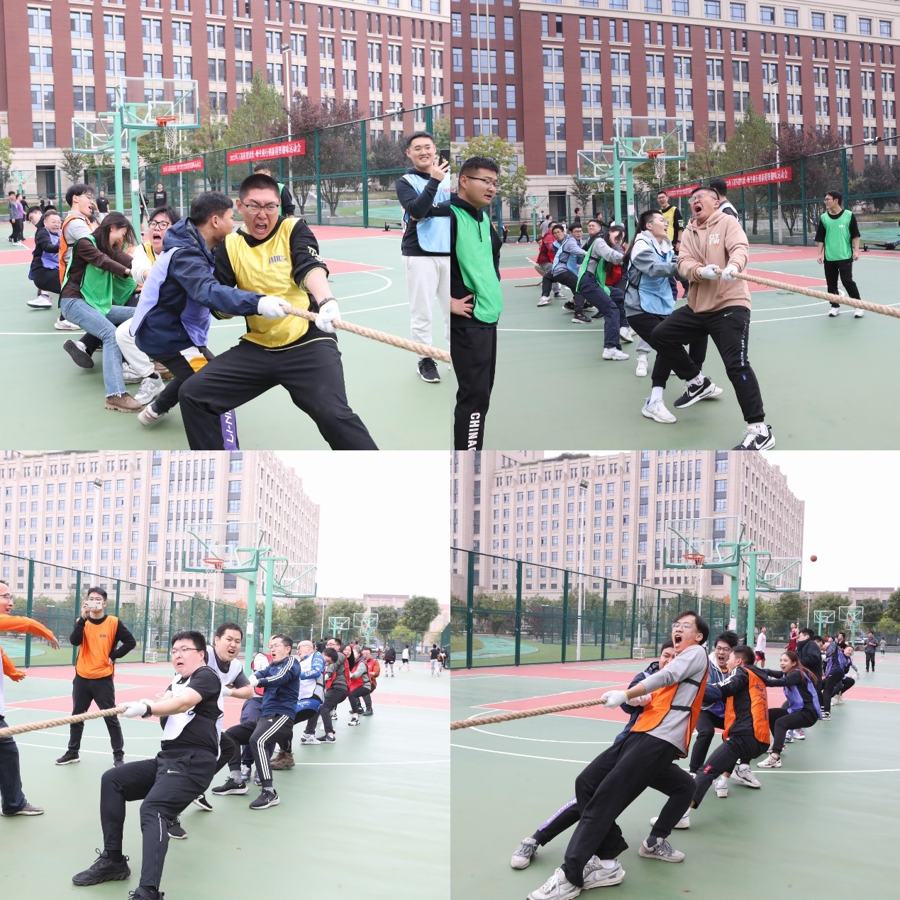 到达创新港简单休整后,趣味运动会正式开始。本次运动会的口号是“汇聚热血,挑战极限,运动盛宴,等你来战”,全体师生精神抖擞,穿着统一的队服欢快出场。参赛队伍包括教师队伍2组(华山论剑队、秦朝雄风队)、学生队伍4组(西楚霸王队、南海蛟龙队、北方之狼队、大唐威武队)。比赛项目包括划船机、俯卧撑、健腹轮、拔河等,现场欢呼声、呐喊声、加油声不断,整场运动会充满挑战性和趣味性,气氛十分热烈。