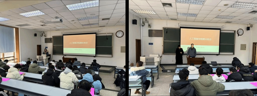 辅导员洪苏涵就诚信考试相关问题与同学们分享。班主任武佳懿老师、陈仕韬老师与同学们进行了答疑互动,并分别组织人工智能2301班、2302班建立期末学习小组。小组同学协调行动进行知识讨论、结伴自习、交流心得等,在学习上共同进步、不让任何一位同学掉队。