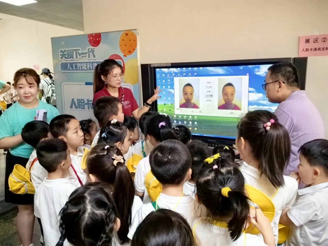 进入人机所内,五个展区更是让孩子们目不暇接。“书童”展区展示了机器人智能识别的能力。5G智能巡检机器人的展区让孩子们感受到了5G技术带来的高效与便捷。机器人视频演示的展区三让孩子们看到了机器人在各行各业的应用前景。人脸卡通画定制的展区让孩子们体验到了人工智能的个性化服务。而播放立体视频电视的展区则让孩子们仿佛置身于一个全新的视觉世界。