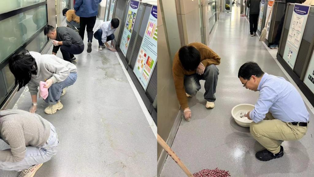 于2024年3月、4月分别组织学院大扫除。学院领导率领全体师生拿起扫帚、拖把、铲子等工具,对学院楼道,工位,教室特别是卫生死角进行了认真清理打扫。在劳动过程中,全校师生分工明确,各司其职,积极热情地参与其中,不放过任何一个卫生死角。经过大家的努力,学院卫生环境得到了进一步的改善,整个面貌焕然一新。共同行动对整个学院环境卫生进行了一次大规模的清洁和美化。