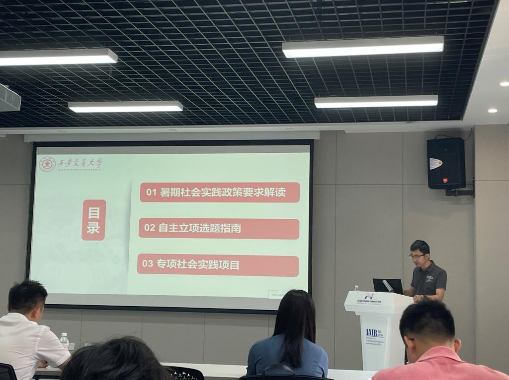 随后,学院团委书记张驰助理教授对暑期社会实践的政策要求进行了详细解读,通过介绍具体时间安排、注意事项和考核标准,帮助同学们做好充分的准备。