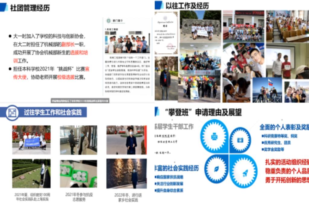正式开始答辩后,前期报名并通过审核的新生们齐聚云端,满怀憧憬与激情,开启了他们在学院的新篇章。答辩环节中,每位新生政治素养、学术科研、学生工作、社会实践等多个维度展现着独特的个人风采。有的同学热情洋溢,讲述着自己在社会实践中的所见所闻和感悟体会,表达出服务社会、奉献青春的赤子之心;有的同学思维敏捷,侃侃而谈自己在学术领域的探索和研究成果,流露出对知识的渴望和对科研的热情;有的同学沉稳干练,细数自己在学生工作中的付出和成就,彰显出优秀的组织能力和领导才能。一场场精彩的答辩,不仅让评委老师对每位新生有了初步的认识和了解,也拉近了新生们彼此之间的距离。