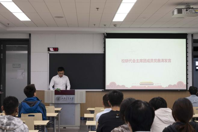 校研会主席团成员党鑫涛在发言中提到,在过去的一年里,西安交大各级研会取得了多方面突破,创下了有意的成绩。他鼓励各级研会继往开来,继续把牢政治方向,不断优化组织架构,成为党联系青年学生的纽带。