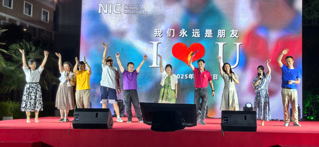 网信中心锁志海主任等老师倾情演唱英文金曲《Take Me Home, Country Roads》,熟悉而温暖的旋律唤起了在场毕业生对校园时光的深深眷恋。歌曲结束后,现场掌声经久不息,观众热情高涨,纷纷呼喊返场。应大家的热情期待,网信中心老师们再次登台献唱歌曲《朋友》,并惊喜呈现了他们精心拍摄制作的MV,展现了人机所师生之间亦师亦友的关系,更是让现场气氛温馨而感人。