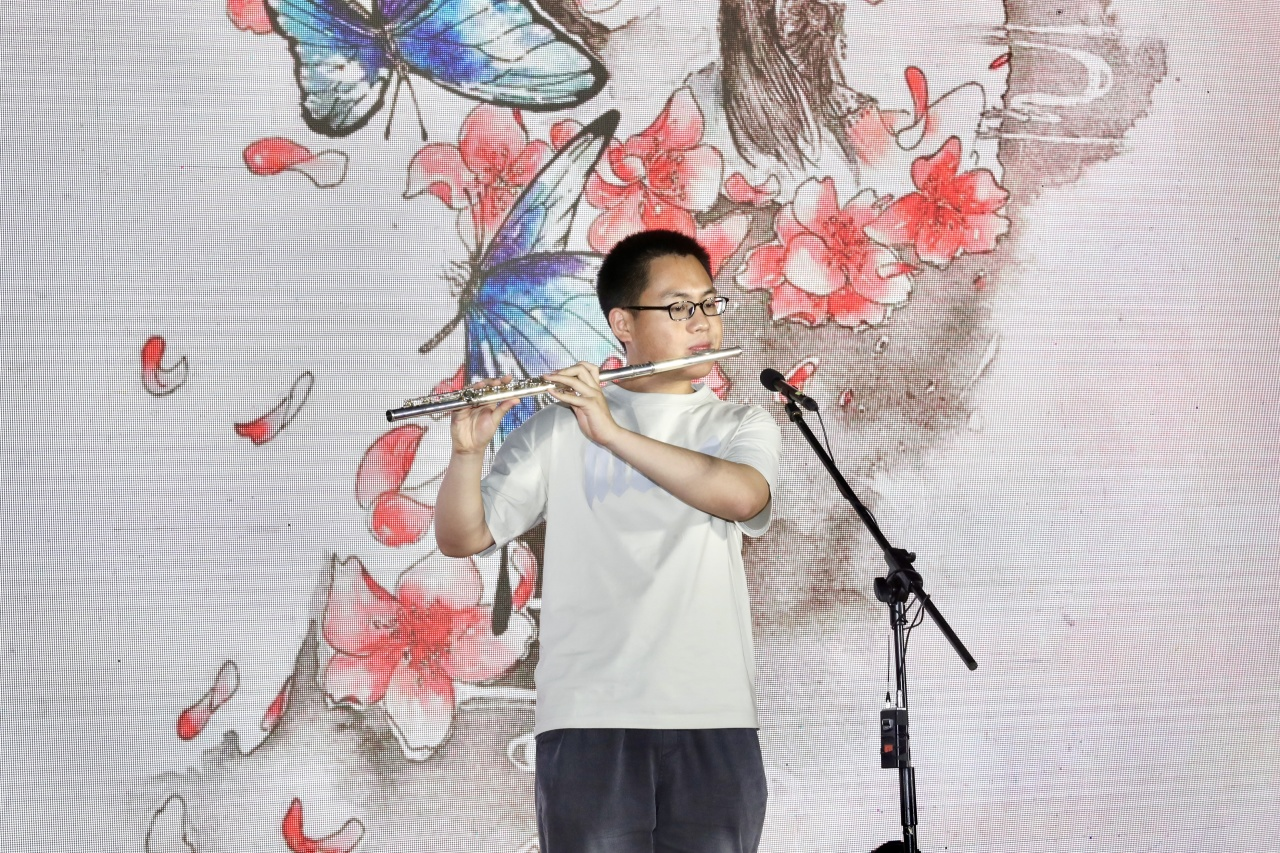 感恩师恩,珍藏校园记忆。周润宇同学的长笛独奏《梁祝》,笛声悠扬,婉转动人,诉说着校园里的青春情谊与美好回忆。