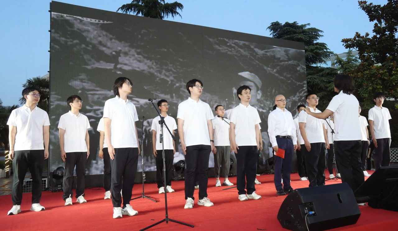 兰旭光老师携手人机所男生们合唱《保卫黄河》与《游击队之歌》,那激昂的旋律瞬间点燃全场,让观众们仿佛回到那段波澜壮阔的峥嵘岁月,也与 80 年前抗日战争的硝烟岁月遥相呼应,展现了中华民族在危难时刻的坚韧与不屈。