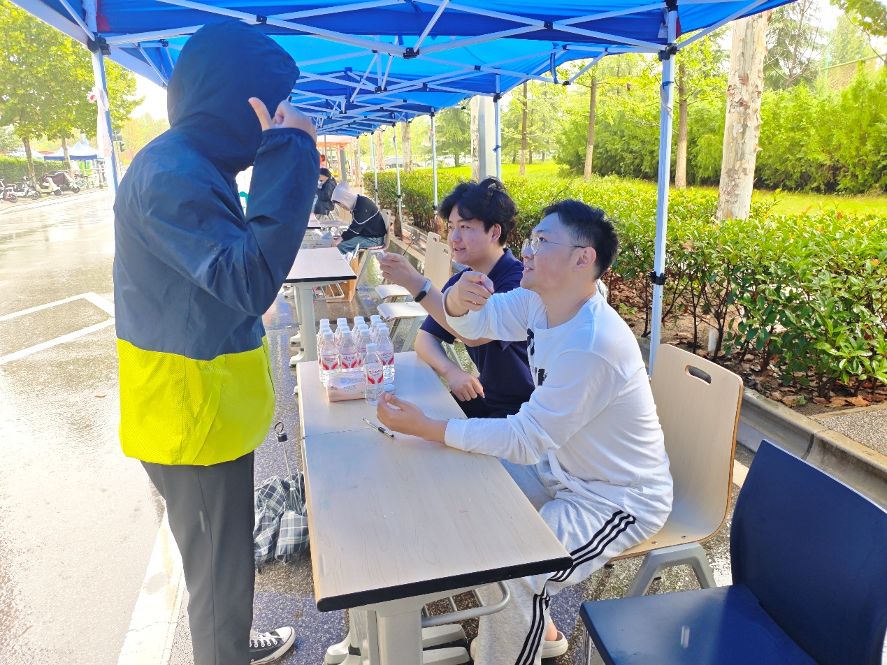 与此同时,在宿舍区,另一批志愿者主动为新同学指引路线、解答疑问,并协助搬运行李。大家始终保持热情和耐心,用真诚的服务为新生和家长营造了温馨的氛围。