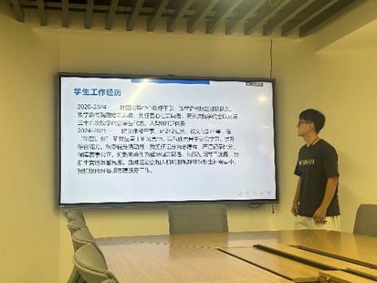 在换届答辩环节中,团委干部候选人率先登台进行答辩。张佳倩、徐志坚、陈博远三位同学竞选团委学生副书记,结合自身经历阐述了对学生工作的理解与规划,展现出坚定的责任感与清晰的工作思路。曹可人同学竞选团委办公室学生主管,强调细致严谨的工作态度和高效执行力;赵盛伟同学竞选团委学生委员会委员,提出了促进学术交流、服务科研创新的设想。几位候选人准备充分,逻辑清晰,展现了团委学生干部的责任担当与服务意识。