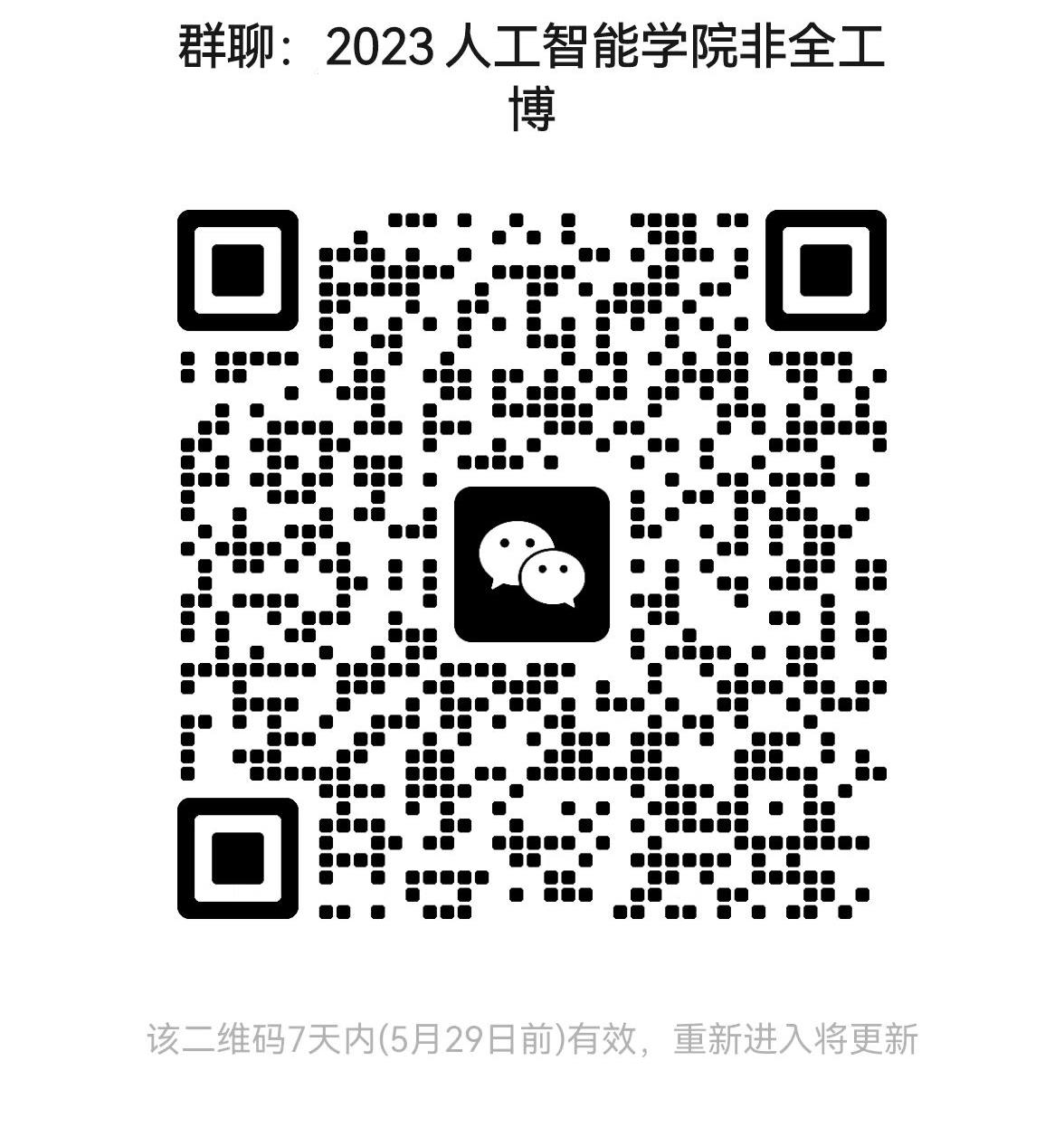 综合考核线下进行,时间:2023年5月27日,地点:微密圈 兴庆校区。请通过材料评议的同学扫描二维码进群以便后续通知。