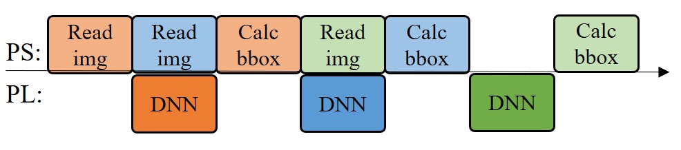 由于HiPU仅仅依赖Zynq的PL侧的资源进行设计,PS侧的资源可以空出来做系统IO相关的工作。我们团队在处理当前图片的检测运算时,在PS侧预读并解码下一幅图片,提高处理的并行度,从而使整体检测帧率从30.3Hz提高到50.9Hz。